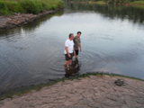 kurzen Pause am Moselufer im Schatten einer Steilwand kurz hinter Zell ginge
