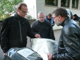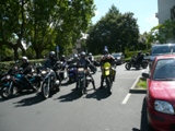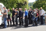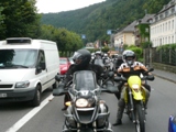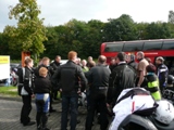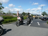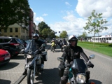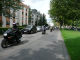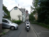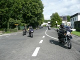 um 9:30 Uhr starten. Aufgrund der ursprünglichen geplanten 40 Teilnehmer, wollten wir die Gruppe in zwei Hälften aufteilen. Die erste Gruppe wollten Holly und ich zwischen uns nehmen, die Zweite Wolle und Stephan (Nase). Soweit zum Vorsatz! An der ersten Ampelkreuzung zwischen Altenrath Und Lohmar wurde die zweite Gruppe ungefähr auf der Hälfte zerrissen. Der letzte beim abbiegen hat nicht bemerkt das hinter ihm alles an der Ampel hängengeblieben war. Diese haben wiederum nicht mitbekommen das alle vor ihnen nach rechts abgebogen waren und fuhren nach der Ampel geradeaus weiter. Was dazu führte das wir fast 45 Minuten "getrennte Wege" fuhren! Per Telefon konnte man sich aber mehr schlecht als recht verständigen und sich so auf ein Treffen an der "Autofähre Rolandseck" einigen. |