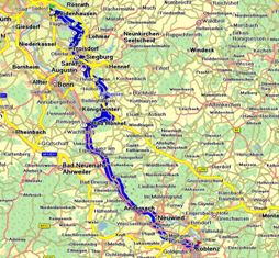fuhren eine Weile in Richtung Koblenz am Rhein entlang. Dort war eine
