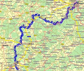 Dieses Jahr wollten wir uns anläßlich unseres zwanzigjährigen Bestehens an die erste zweitägige Tour erinnern und diese so fahren wie 1995, mit dem einzigen Unterschied, das wir uns drei Tage Zeit genommen haben. Am ersten Tag war geplant an Rhein und Mosel entlang nach Waldrach /Ruwerthal bei Trier zu fahren, wo wir im Landgasthof Simon übernachtet wollten. |
