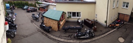 parkten die Motorräder im Hof des Hotel "Haus Mehrblick",