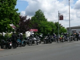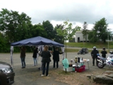Dann ging es OHNE Regenzeug weiter in Richtung Runkel, wo wir mit unseren Catering-Frauen verabredet waren. Pünktlich um 13:00 Uhr fuhren wir auf den Parkplatz "Am Sportplatz", auf dem die Frauen gerade den Pavillon aufbauten. | |||