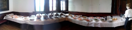 Ursprünglich war am ersten Abend ein Barbecue geplant, aber aufgrund der instabilen Wetterprognose hat sich der Burgherr dazu entschlossen ein Buffet zu machen das es in sich hatte. Es fehlte an nichts. Alles was da war gab es im Überfluss! | |||