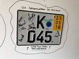 Holly war heute mit seinem frischem Kurzzeitkennzeichen auch wieder dabei! Das Alte wurde von allen signiert und von Daniel in seiner "Hall of Fame" an die Wand geschraubt! |