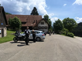 Da die Wetterprognosen für heute mehr als schlecht waren, beschlossen Marcel und ich den Tag für den sowieso geplanten Familienbesuch mit dem Auto auf der Schwäbischen Alb zu nutzen. Der Blick auf das Navi zerstörte diesen Plan aber fix. 2,5 Stunden (mit Verzögerung) Hinfahrt = 5 Stunden mindestens hin, und zurück wenn keine Staus etc. vorkommen. Wir waren von einer Stunde Fahrzeit ausgegangen, aber so blieb für den eigentlichen Besuch kaum Zeit. Also verwarfen wir den Plan und fuhren nach Offenburg um einen Rückenprotektor zu kaufen und erkundeten nach der Rückkehr die Umgebung des Ferienhofs. Während der Rest der Truppe die Alpirsbacher Klosterbräu Brauerei besichtigte. |