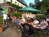 Nach weiteren fast 4 Stunden Fahrt sind wir gegen 17:45 Uhr ziemlich erledigt am Hotel angekommen. Nachdem sich alle erst mal mit einem Bier etc. erfrischt hatten ging es auf die Zimmer zum Duschen. Um 19:00 Uhr war das Grillbuffet geplant. | |||