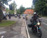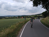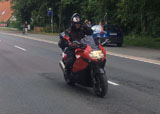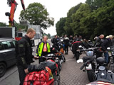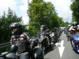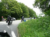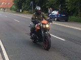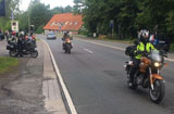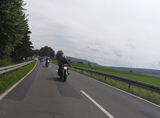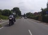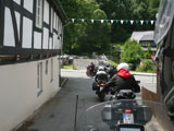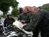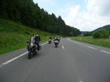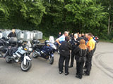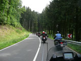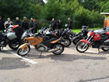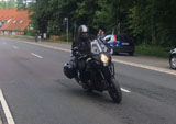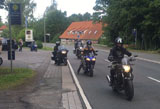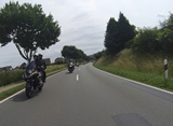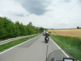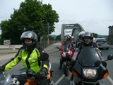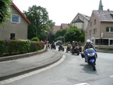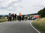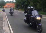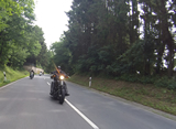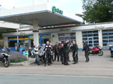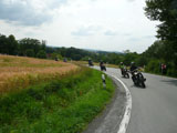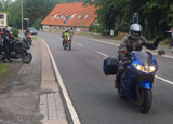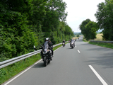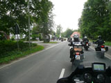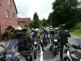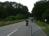 Als der RTW mit Nase in Richtung Krankenhaus abgefahren war (Michaels Frau Martina fuhr mit, um ihm beizustehen) teilten wir die Gruppe neu auf, um mehr Platz für den übrigen Verkehr zu machen. Der größte Teil der Gruppe folgte Reiner auf dem Rest der Route zum Hermannsdenkmal, wir übrigen wollten nach dem Abtransport des Motorrades hinterher fahren um uns am Hermann wieder zu treffen! |