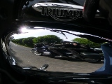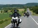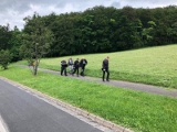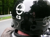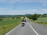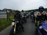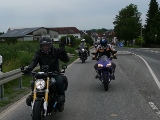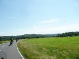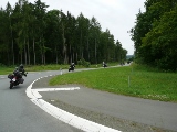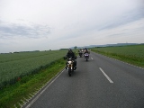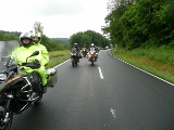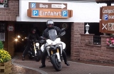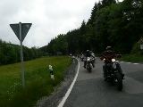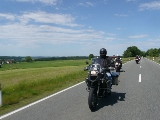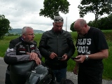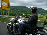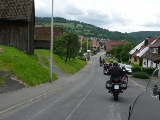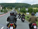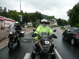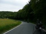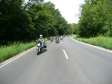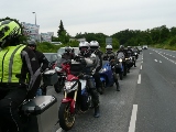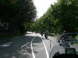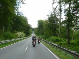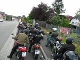 wir uns um einige Änderungen zu besprechen. Der wichtigste Punkt war die geplante "Sollbruchstelle" die künftig eingeführt wird. Wir teilen ab heute die Gruppe in zwei Hälften, fahren aber gemeinsam los. Sollten unterwegs in der hinteren Hälfte einige an einer Ampel oder an einem Kreisverkehr aufgehalten werden, fährt die vordere Gruppe geschlossen weiter, die Übrigen sammeln sich dann wieder und fahren als separate Gruppe weiter. So soll vermieden werden dass z.B. 20 Motorräder einen Platz am Straßenrand suchen müssen, um auf die aufgehaltenen zu warten. Kurz nachdem wir die A59 verlassen hatten, traf der Fall auch schon ein. Die erste Gruppe kam an der Ampel durch, während die Zweite zurück blieb. |